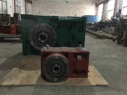 ZLYJ減速機是為了塑料螺桿擠出機配設計的高精度硬齒面帶推力的傳動部件。產(chǎn)品設計采用了JB/T8853-2001所規(guī)定的各項技術規(guī)范。其特點是齒輪和軸類件采用了高-強度合金鋼。齒輪經(jīng)滲碳、淬火、廉齒工藝加工。齒輪精度為GB10095-886級。齒面硬度HRC54-62.在空心輸出軸前端配有超規(guī)格的推力軸承,承受螺桿的工作軸向力。軸承和油封等主標準皆采用國內優(yōu)良產(chǎn)品,也可按用戶需要,配裝進口產(chǎn)品。整機具有體積小.承載能力高、傳動平穩(wěn)、噪聲低、效率高等特點。產(chǎn)品性能已達到國際先進水平。可替代同類型進口產(chǎn)品使用。本系列產(chǎn)品中的規(guī)格和傳動比為現(xiàn)有用戶的常用數(shù)據(jù)。用戶在選用時,可將桿的實際傳動扭矩與許用輸出扭矩為準選型。若需與橡膠擠出機配妻,因橡膠擠出機沖擊力較塑料強.請用戶提出具體技術參數(shù).向我廠咨詢再確定選型。
